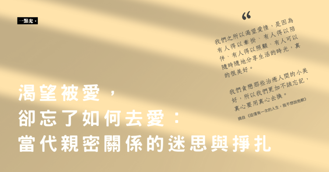 沒有太多人有那個耐性,去忍耐關係中的不確定性 ,去接受關係中的付出和收穫不一定平衡,去發現和學習愛是怎麼一回事。