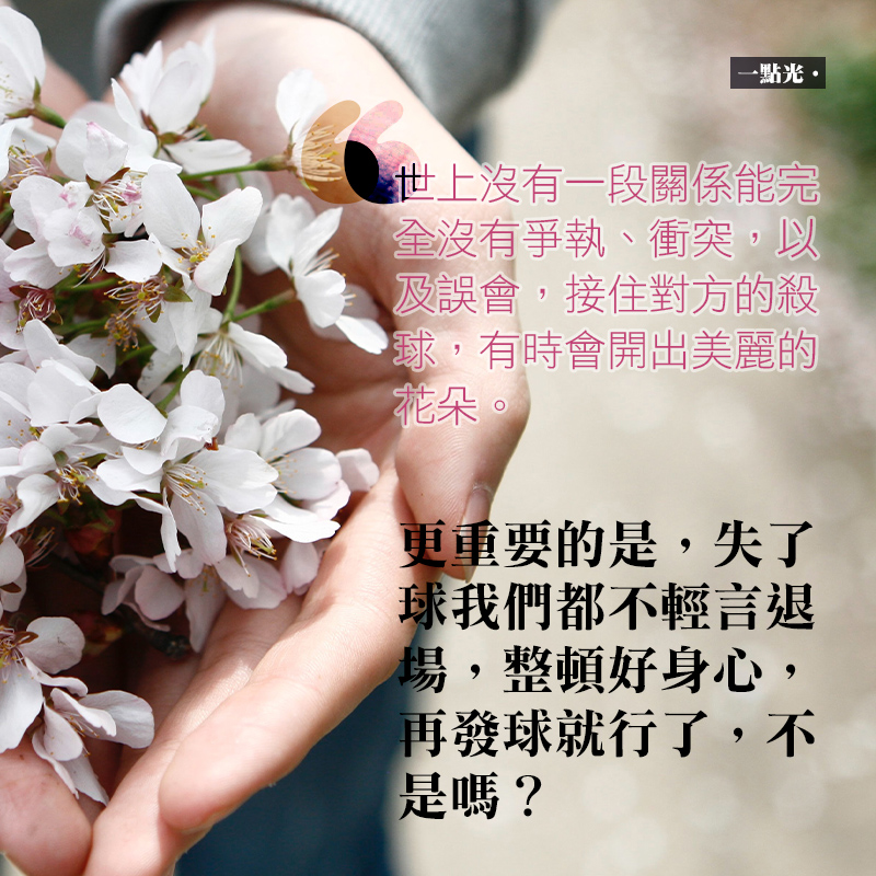 更重要的是,對於重視的關係,我們都不輕言退場,整頓好身心,再發球就行了,不是嗎?